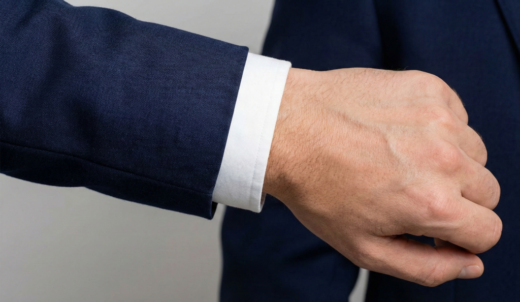 - El largo de la manga: Aquí es donde muchos fallan. La manga del saco nunca debe tapar tus manos. Debe terminar justo en el hueso de la muñeca, permitiendo que se asome entre 1 y 2 centímetros del puño de tu camisa. Ese pequeño contraste visual es el sello definitivo de la elegancia.